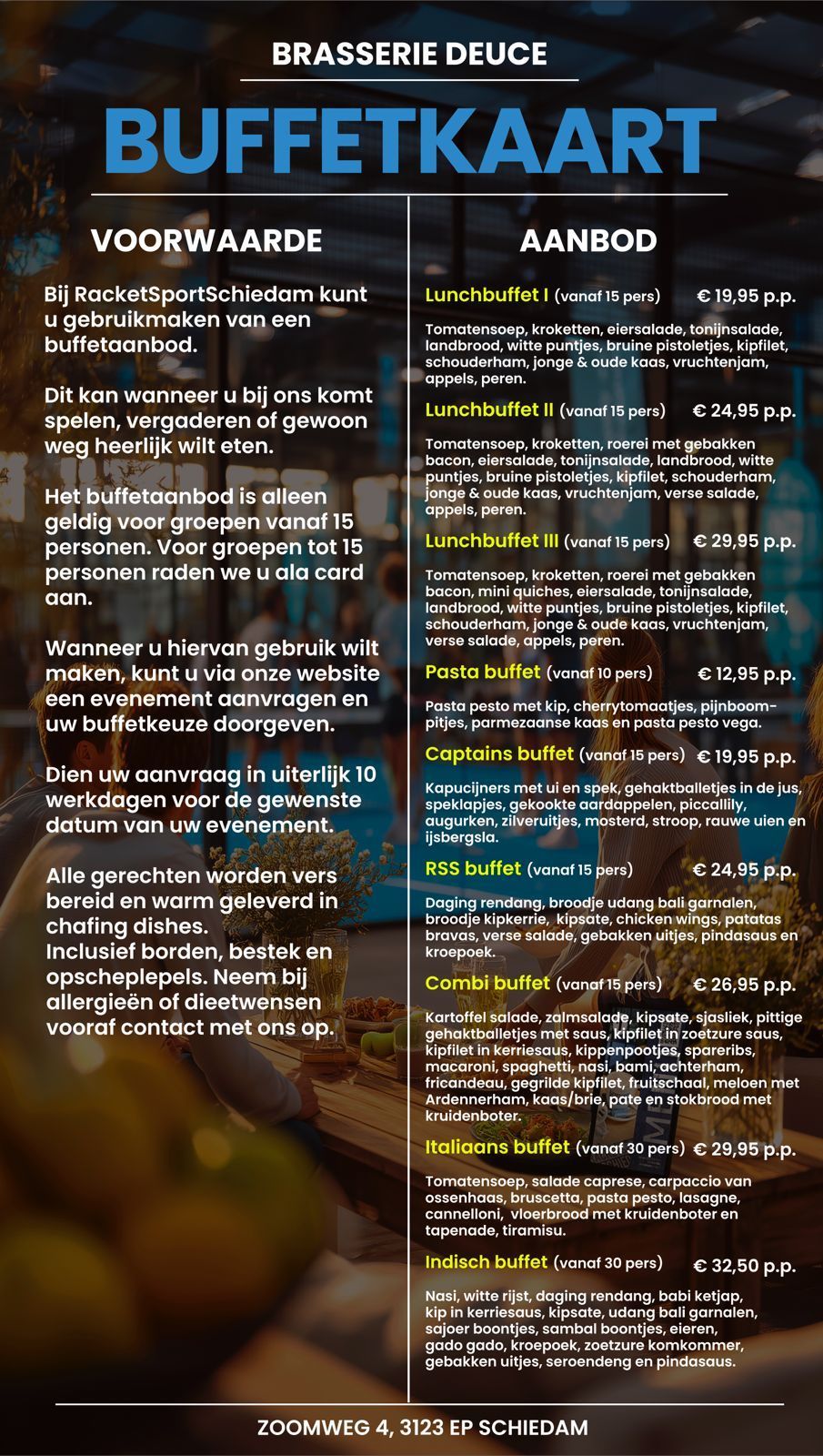 De buffetten zijn mogelijk vanaf 15 personen of meer.